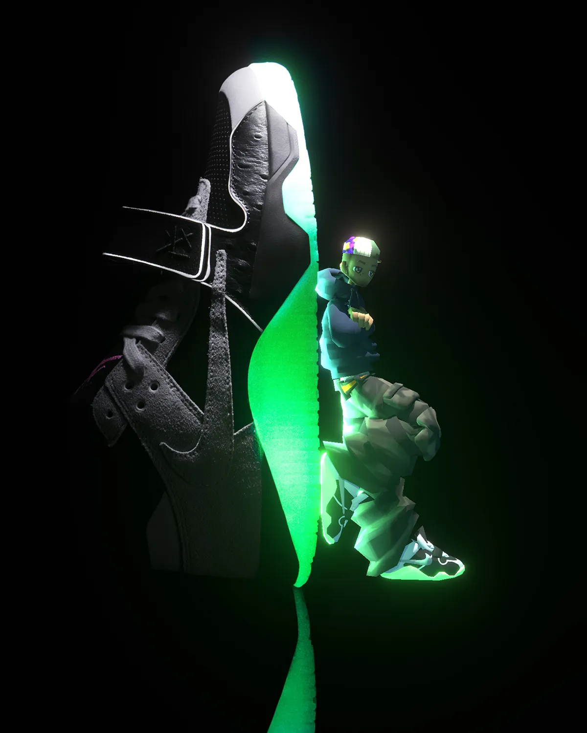 - Outsole features glow-in-the-dark finish to light up your look all night long